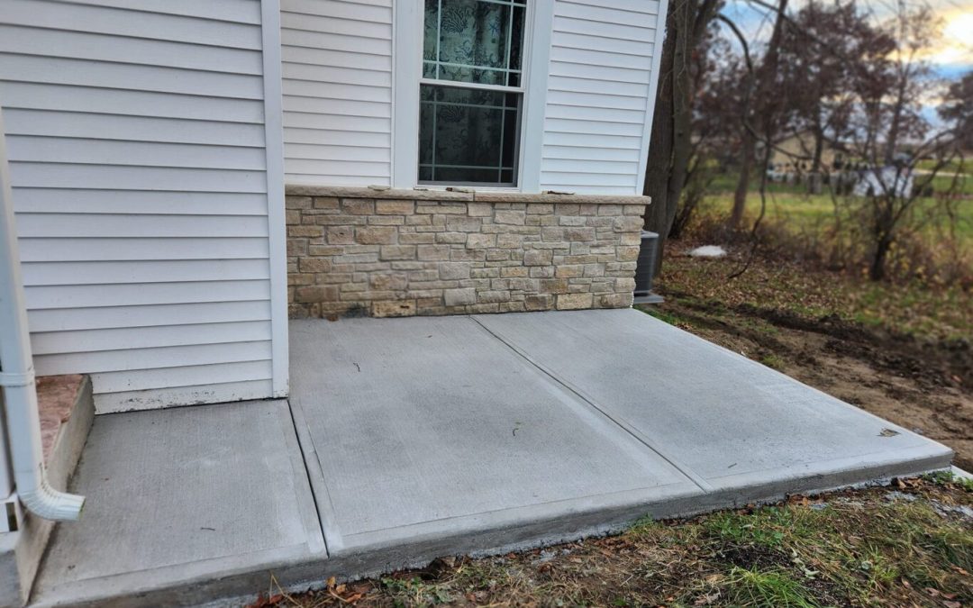 Home patio construction completed for a client. Call for driveway, sidewalk, or any flat concrete construction needs. We do it right!